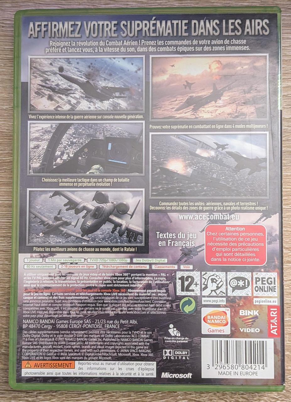 L3 - Ace Combat 6 - Fires Of Liberation Xbox 360 - EAN : 3296580804214 - ARTICLE OCCASION EN TRES BON ETAT GÉNÉRAL - BOITIER ORIGINAL XBOX 360 - JEUX JOUABLE EN FRANCAIS - LIVRAISON ULTRA RAPIDE EN COLIS SUIVI PROTÈGE - COVER FR - COMPLET CIB