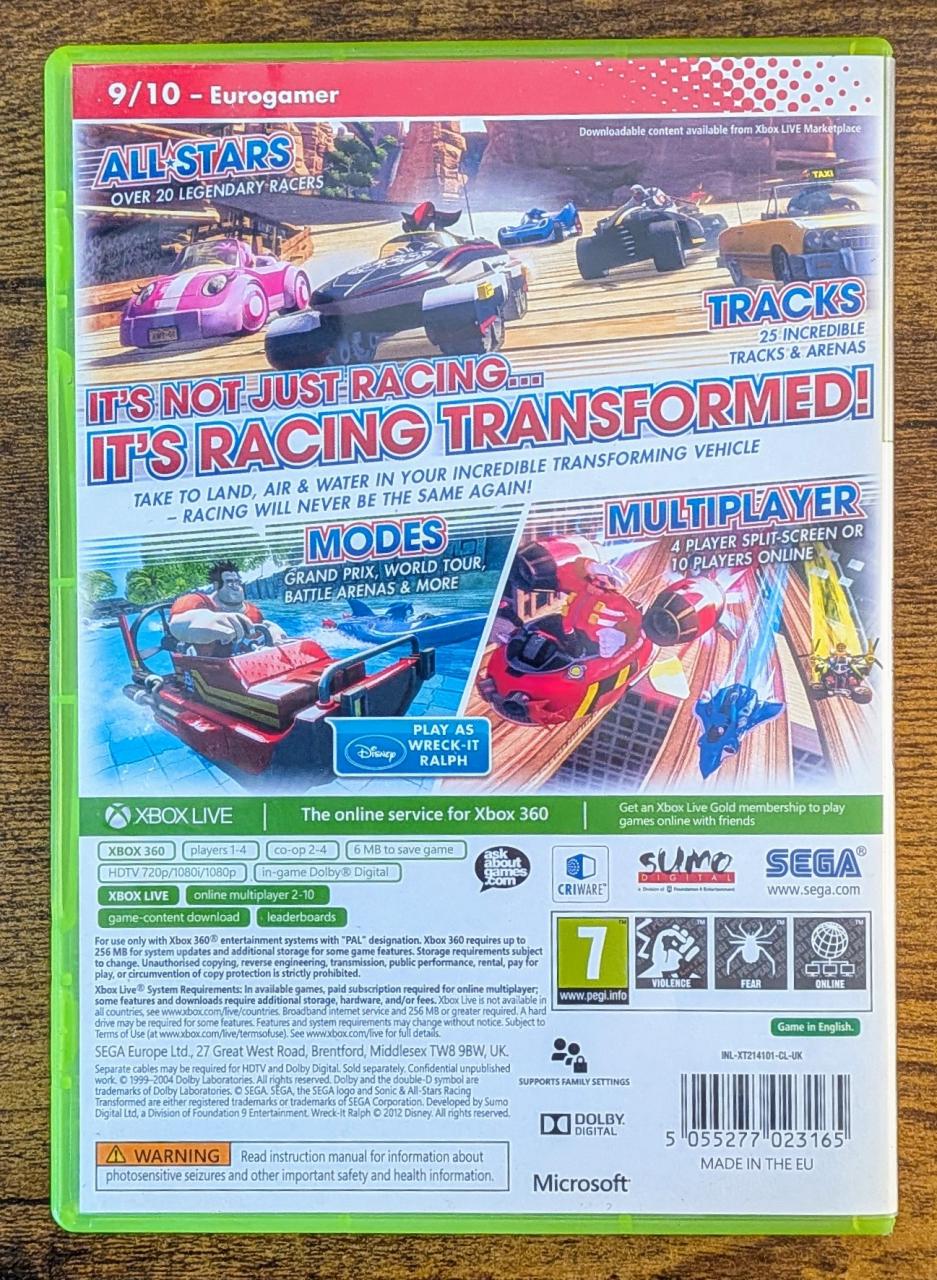 L2 - Sonic & Sega All-Star Racing - Transformed Xbox 360 / EAN : 5055277023165 - ARTICLE OCCASION EN TRES BON ETAT GENERAL - TEST MACHINE OK - PACK COMPLET JOUABLE EN FRANCAIS - LIVRAISON SUPER RAPIDE EN COLIS SUIVI PROTEGE - COVER E.U - COMPLET CIB