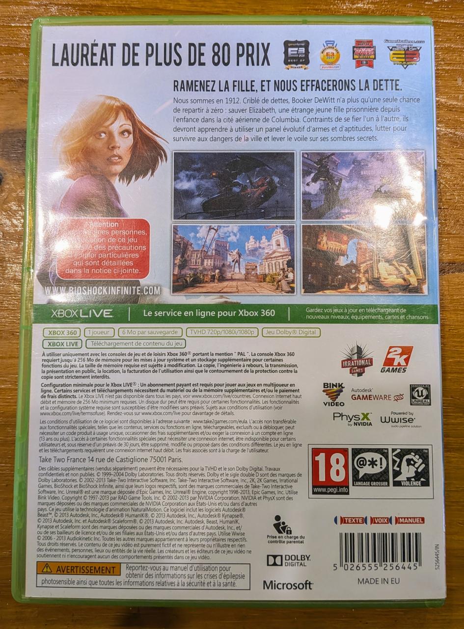 L2 - Bioshock - Infinite Xbox 360 - EAN : 5026555256445 - ARTICLE OCCASION EN TRES BON ETAT GÉNÉRAL - BOITIER ORIGINAL XBOX 360 - JEUX JOUABLE EN FRANCAIS - LIVRAISON ULTRA RAPIDE EN COLIS SUIVI PROTÈGE - COVER FR - PRIX FERME ET NON NEGOCIABLE MERCI DE RESPECTER CELA SVP