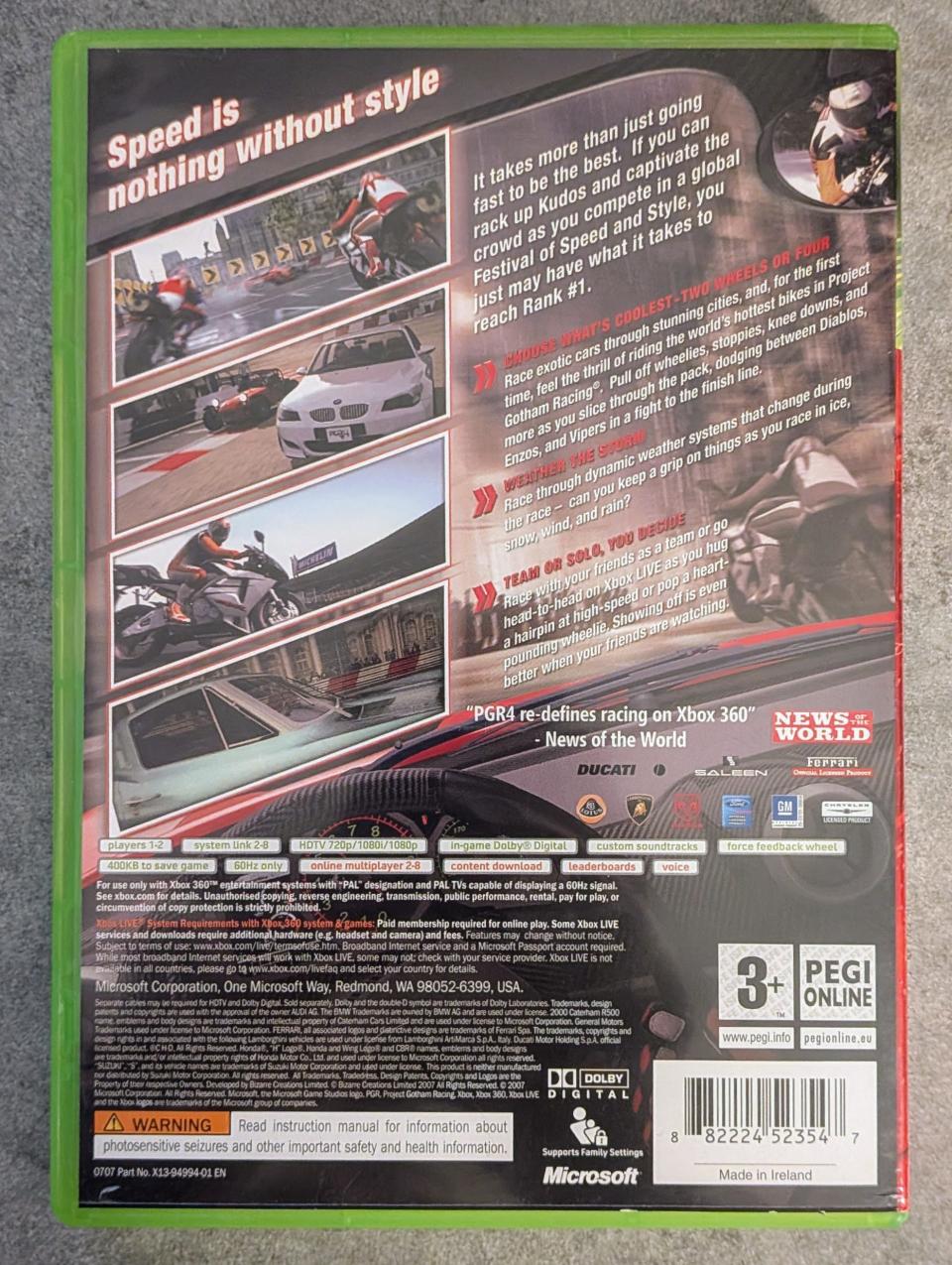 L3 - Project Gotham Racing 4 - Pgr 4 Xbox 360 - EAN : 882224523554 / 882224523547 - ARTICLE OCCASION EN TRES BON ETAT GÉNÉRAL - BOITIER ORIGINAL XBOX 360 - JEUX JOUABLE EN FRANCAIS - LIVRAISON ULTRA RAPIDE EN COLIS SUIVI PROTÈGE - COVER E.U - COMPLET CIB