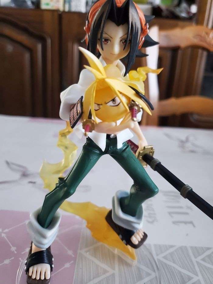 figurine shaman king yoh asakura ses t'une officielle marque bandai spirits 19cm de hauteur comme neuf