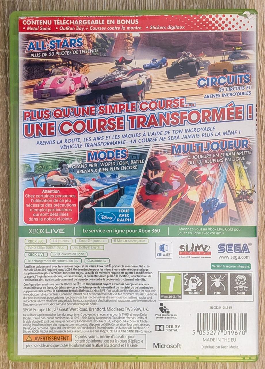 L1 - Sonic & Sega All-Star Racing - Transformed - Edition Limitée Xbox 360 / EAN : 5055277019670 - ARTICLE OCCASION EN TRES BON ETAT GENERAL - TEST MACHINE OK - PACK COMPLET - LIVRAISON SUPER RAPIDE EN COLIS SUIVI PROTEGE - COVER FR - CIB