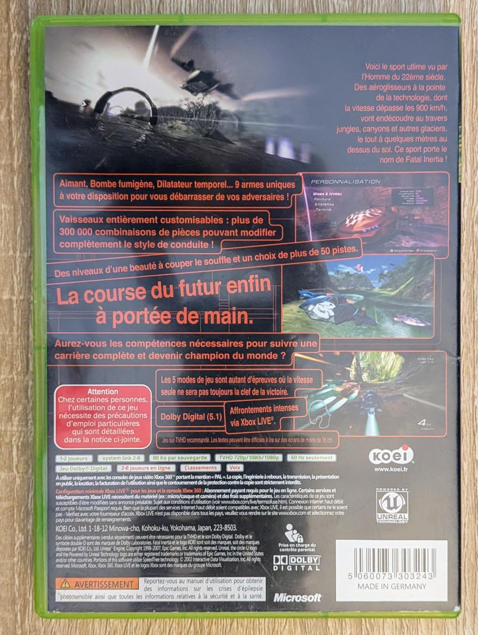 L3 - Fatal Inertia Xbox 360 - EAN : 5060073303243 - ARTICLE OCCASION EN TRES BON ETAT GÉNÉRAL - BOITIER ORIGINAL XBOX 360 - JEUX JOUABLE EN FRANCAIS - LIVRAISON ULTRA RAPIDE EN COLIS SUIVI PROTÈGE - COVER FR - COMPLET CIB