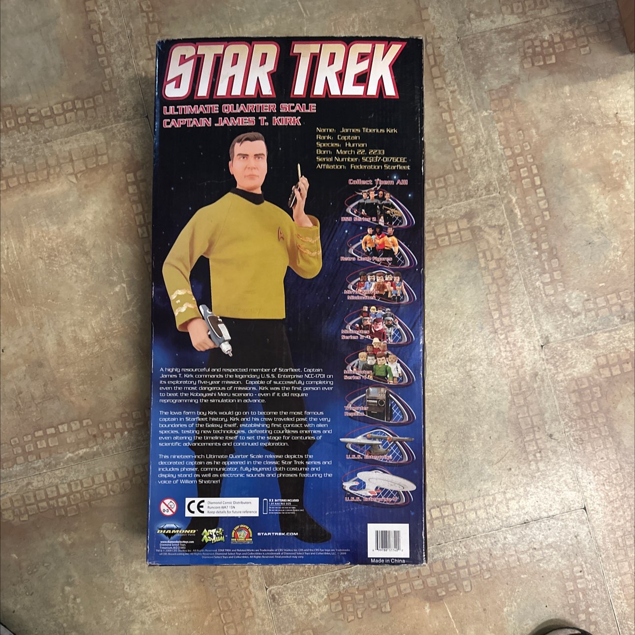 boite scellé jamais ouverte figurine 50 cm environ la pile du système son est a changer vu age la boîte a une usure au dessus ou a star trek écrit
