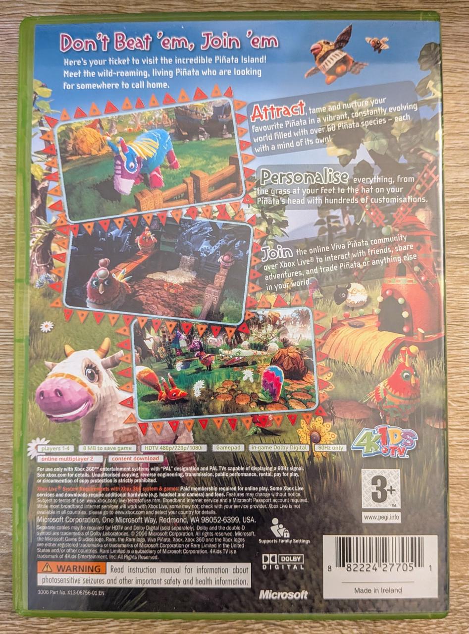 L1 - Viva Pinata Xbox 360 - EAN : 882224277051 / 0882224255549 - ARTICLE OCCASION EN TRES BON ETAT GÉNÉRAL - TEST MACHINE OK - BOITIER ORIGINAL XBOX 360 - JEUX JOUABLE EN FRANCAIS - LIVRAISON ULTRA RAPIDE EN COLIS SUIVI PROTÈGE - COVER E.U - COMPLET CIB