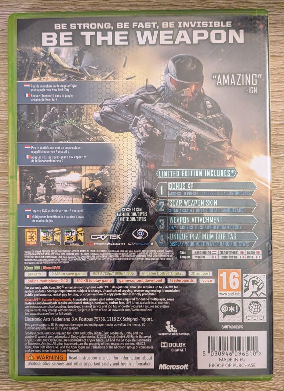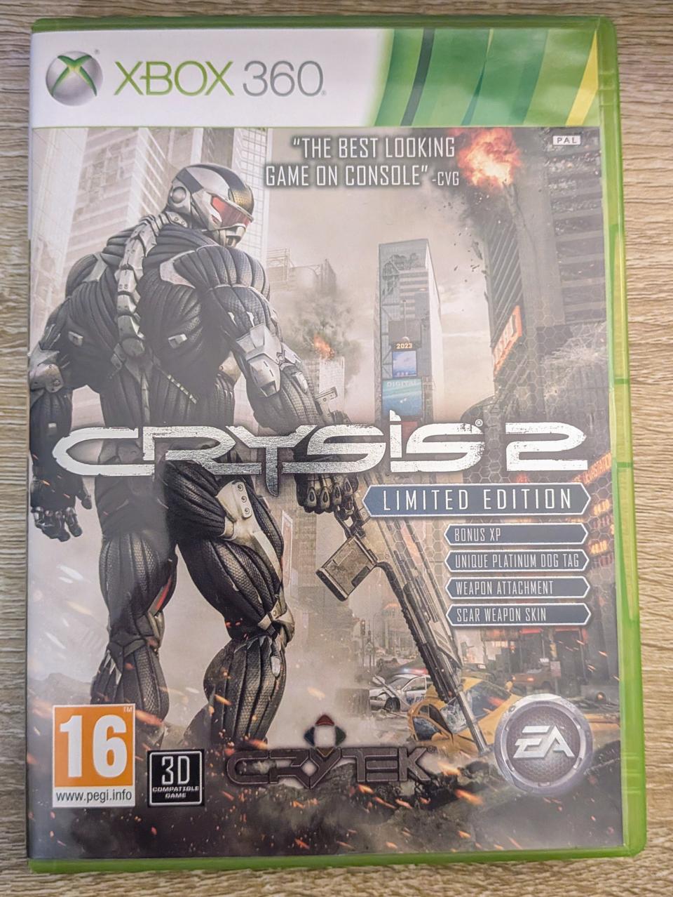 L3 - Crysis 2 Limited Edition Xbox 360 - EAN : 5030946096510 / 5030930091392 - ARTICLE OCCASION EN TRES BON ETAT GÉNÉRAL - TEST MACHINE OK -BOITIER ORIGINAL XBOX 360 - JEUX JOUABLE EN FRANCAIS - LIVRAISON ULTRA RAPIDE EN COLIS SUIVI PROTÈGE - COVER E.U - COMPLET CIB