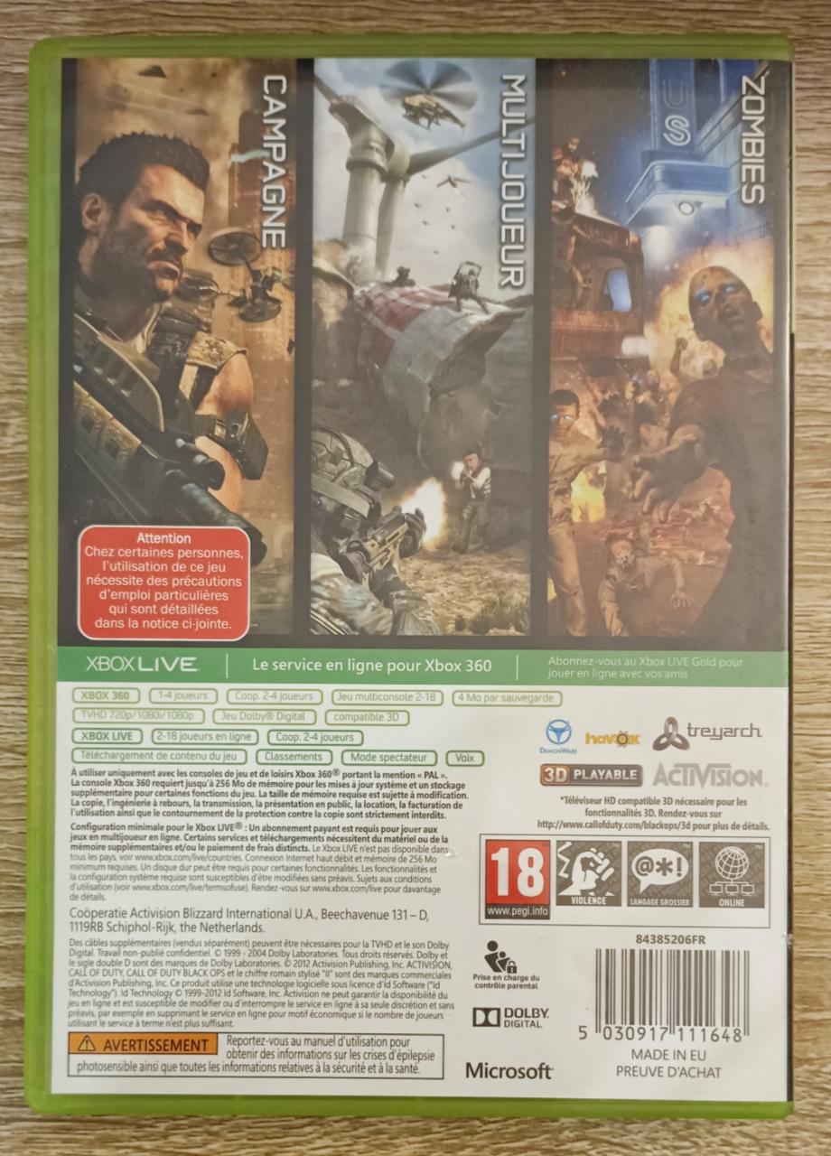 L1 - Call Of Duty - Black Ops II Xbox 360 - EAN : 5030917111648 - ARTICLE OCCASION EN TRES BON ETAT GÉNÉRAL - TEST MACHINE OK - BOITIER ORIGINAL XBOX 360 - JEUX JOUABLE EN FRANCAIS - LIVRAISON ULTRA RAPIDE EN COLIS SUIVI PROTÈGE - COVER E.U - COMPLET CIB