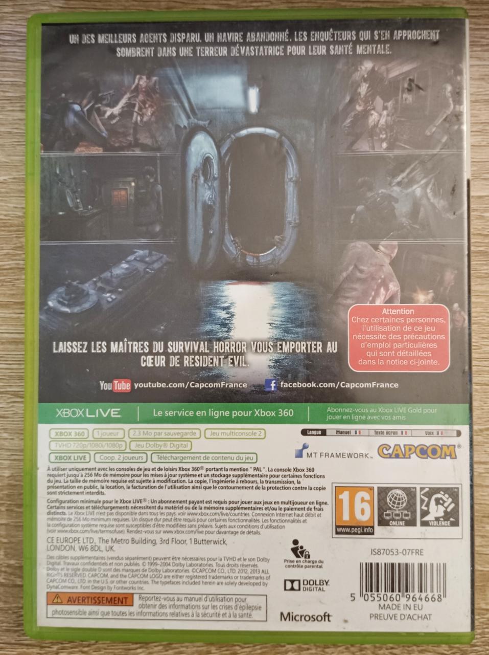 L2 - Resident Evil Revelations Xbox 360 - EAN : 5055060964668 - ARTICLE OCCASION EN TRES BON ETAT GÉNÉRAL - TEST MACHINE OK - BOITIER ORIGINAL XBOX 360 - JEUX JOUABLE EN FRANCAIS - LIVRAISON ULTRA RAPIDE EN COLIS SUIVI PROTÈGE - COVER FR - COMPLET CIB