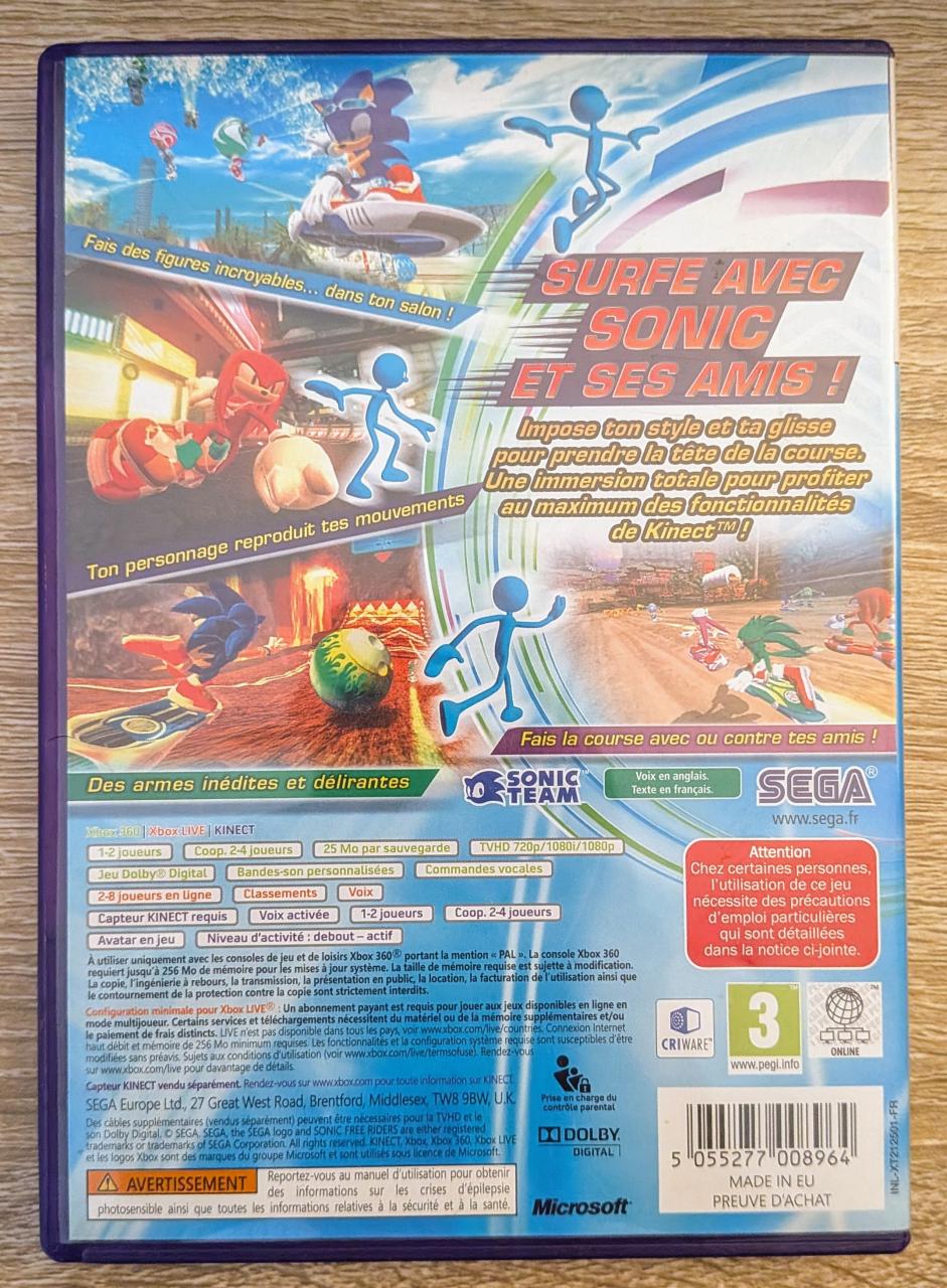 L2 - Sonic Free Riders Xbox 360 - EAN : 5055277008964 - ARTICLE OCCASION EN TRES BON ETAT GÉNÉRAL - BOITIER ORIGINAL XBOX 360 - JEUX JOUABLE EN FRANCAIS - LIVRAISON ULTRA RAPIDE EN COLIS SUIVI PROTÈGE - COVER FR