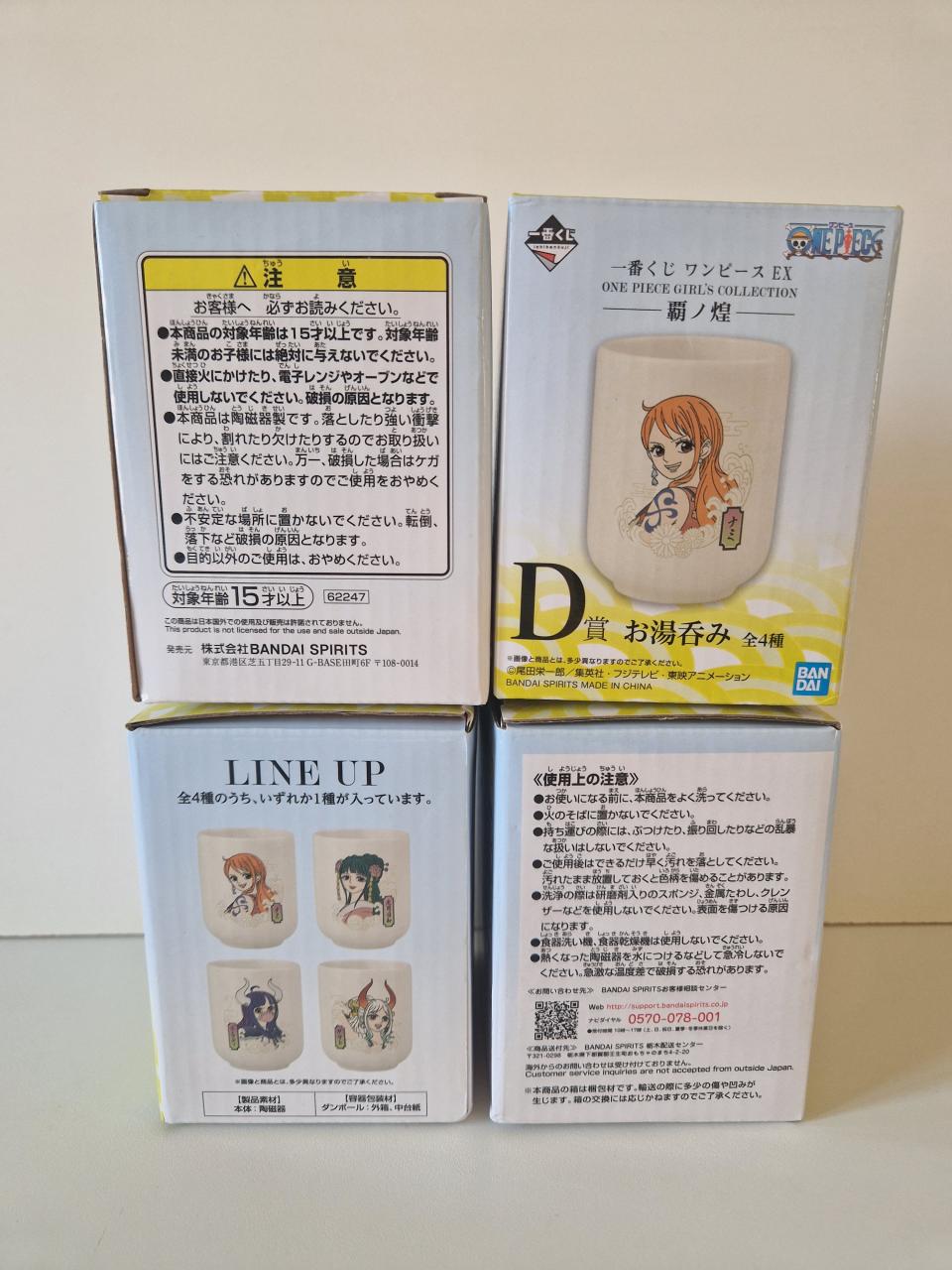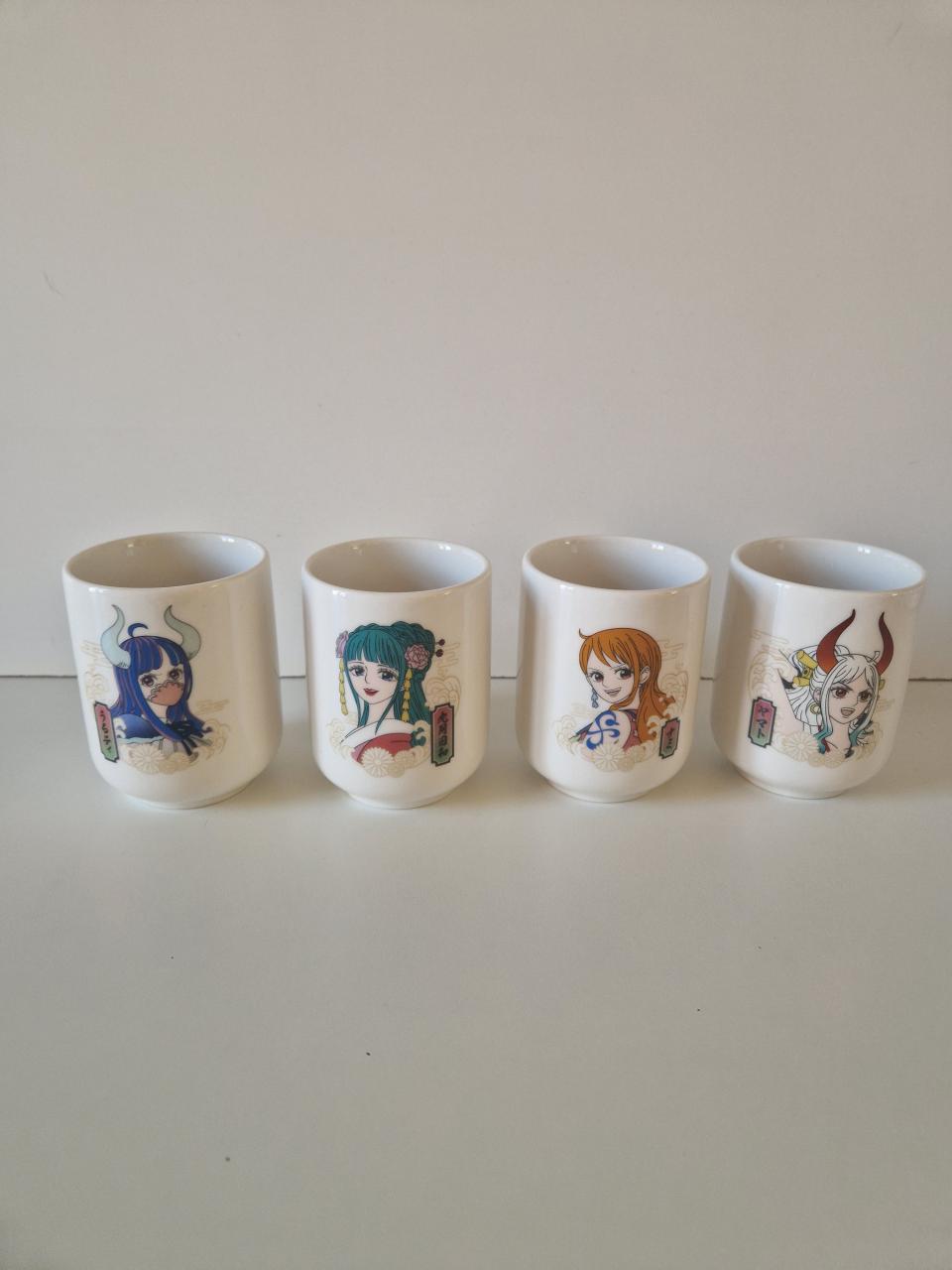 Chaque tasse représente un personnage féminin différent de One Piece (collection complète du lot).