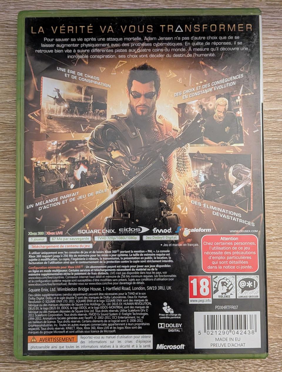 L1 - Deus Ex - Human Revolution Xbox 360 - EAN : 5021290042438 - ARTICLE OCCASION EN TRES BON ETAT GÉNÉRAL - TEST SUR CONSOLE ( Core , Elite , Arcade , 360 S , Xbox 360 E ) OK - BOITIER ORIGINAL XBOX 360 - JEUX JOUABLE EN FRANCAIS - LIVRAISON ULTRA RAPIDE EN COLIS SUIVI PROTÈGE - COVER FR - COMPLET CIB - Rétrocompatibilité Xbox Series X pour profiter de l'Auto HDR et du Boost FPS