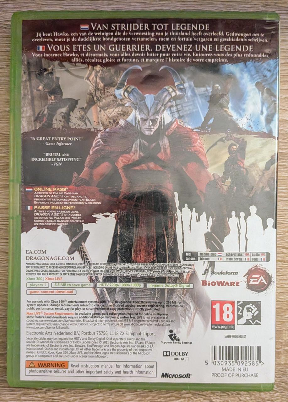 L3 - Dragon Age Ii Xbox 360 - EAN : 5030935092585 / 5030931092589 - ARTICLE OCCASION EN TRES BON ETAT GÉNÉRAL - TEST SUR CONSOLE ( Core , Elite , Arcade , 360 S , Xbox 360 E , SX) OK - BOITIER ORIGINAL XBOX 360 - JEUX JOUABLE EN FRANCAIS - LIVRAISON ULTRA RAPIDE EN COLIS SUIVI PROTÈGE - COVER E.U - COMPLET CIB - Rétrocompatibilité Xbox Series X pour profiter de l'Auto HDR et du Boost FPS