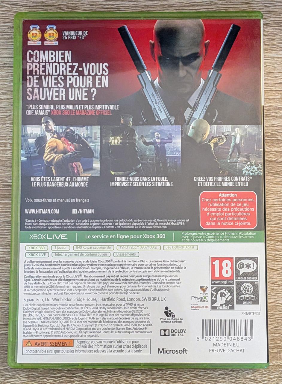 L1 - Hitman - Absolution Xbox 360 - EAN : 5021290048843 - ARTICLE OCCASION EN TRES BON ETAT GÉNÉRAL - TEST SUR CONSOLE ( Core , Elite , Arcade , 360 S , Xbox 360 E ) BOITIER ORIGINAL XBOX 360 - JEUX JOUABLE EN FRANCAIS - LIVRAISON ULTRA RAPIDE EN COLIS SUIVI PROTÈGE - COVER FR - COMPLET CIB - OUI, il est rétrocompatible (jouable sur Xbox One et Series X).