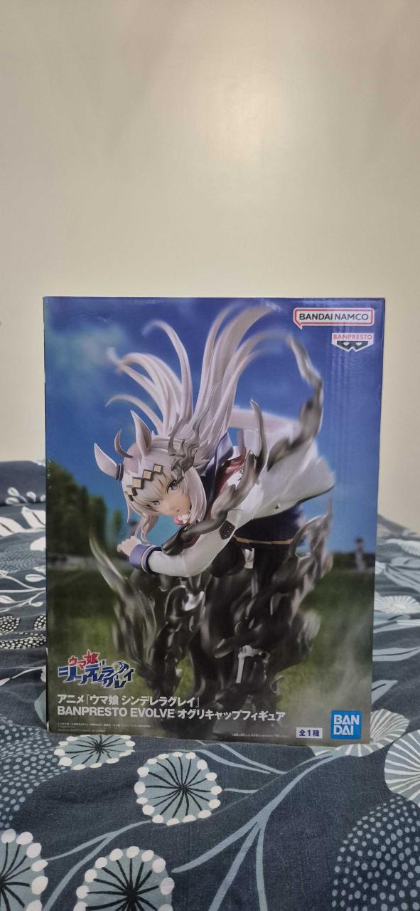 Figurine neuve de Oguri Cap de l'univers Umamusume. En excellent état, seulement sorti quelques jours de sa boîte et exposé avec d'autres figurines. Tamamo Cross est également disponible.