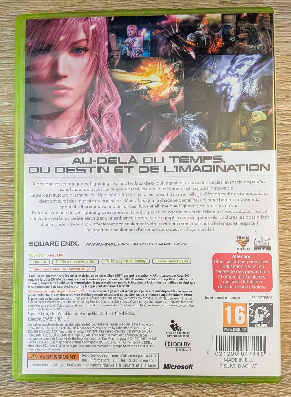 L3 - Final Fantasy Xiii-2 Xbox 360 - EAN : 5021290047440 - ARTICLE OCCASION EN TRES BON ETAT GÉNÉRAL - BOITIER ORIGINAL XBOX 360 - JEUX JOUABLE EN FRANCAIS - LIVRAISON ULTRA RAPIDE EN COLIS SUIVI PROTÈGE - COVER FR - COMPLET CIB
