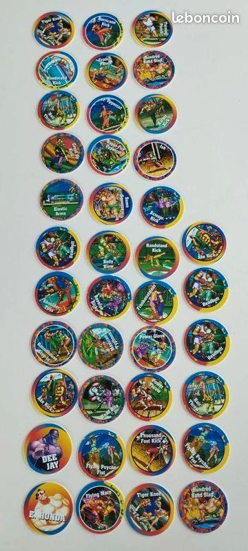 Superbe lot de 39 Pogs Street Fighter II (collection années 90, Capcom) :