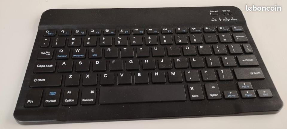 - Caractéristiques principales : Connectivité Bluetooth 5.0 optimisée pour la Mega 12, disposition QWERTY internationale, touches fonctionnelles F1 à F12, raccourcis dédiés pour Android, Windows et iOS, indicateurs lumineux pour Caps Lock, connexion et charge, boutons de gestion de la connexion en haut à droite, touches de navigation supplémentaires (PgUp, PgDn, Home, End).