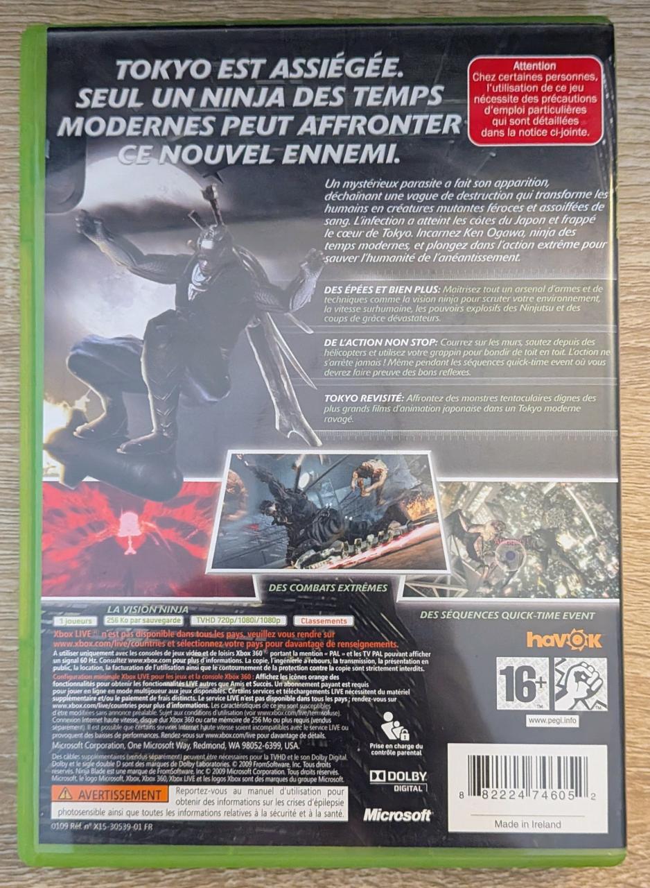 L2 - Ninja Blade Xbox 360 - EAN : 882224746052 - ARTICLE OCCASION EN TRES BON ETAT GÉNÉRAL - TEST MACHINE OK - BOITIER ORIGINAL XBOX 360 - JEUX JOUABLE EN FRANCAIS - LIVRAISON ULTRA RAPIDE EN COLIS SUIVI PROTÈGE - COVER FR - COMPLET CIB