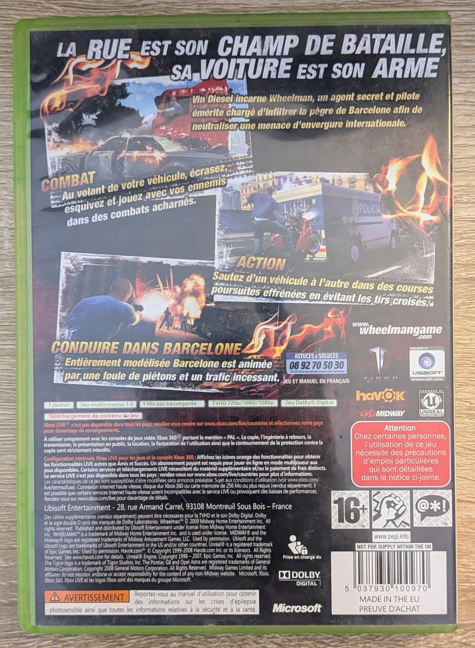 L1 - Wheelman Xbox 360 - EAN : 5037930100970 - ARTICLE OCCASION EN TRES BON ETAT GÉNÉRAL - BOITIER ORIGINAL XBOX 360 - JEUX JOUABLE EN FRANCAIS - LIVRAISON ULTRA RAPIDE EN COLIS SUIVI PROTÈGE - COVER FR - COMPLET