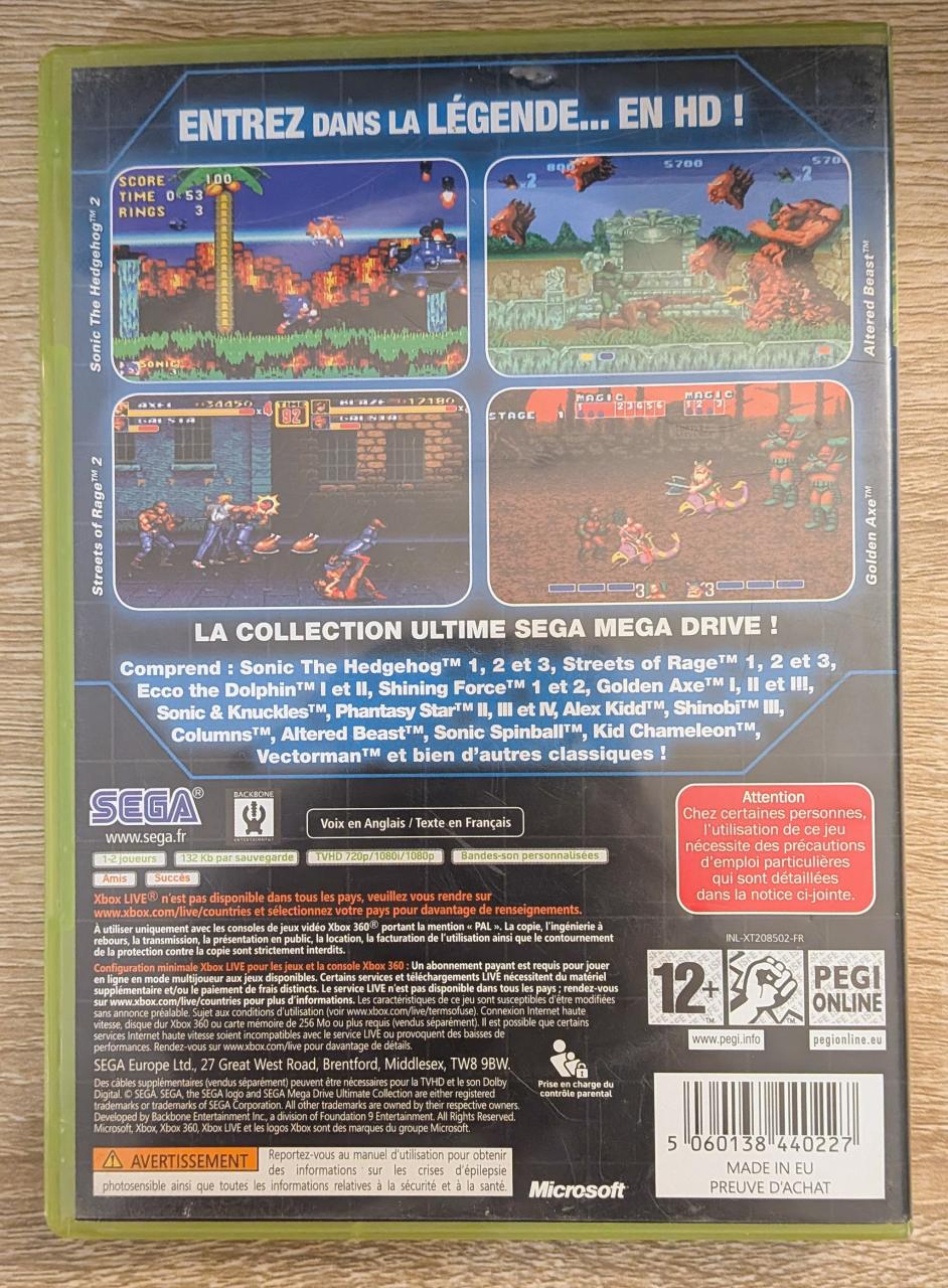 L3 - Sega Mega Drive Ultimate Collection Xbox 360 - EAN : 5060138440227 - ARTICLE OCCASION EN TRES BON ETAT GÉNÉRAL - TEST SUR CONSOLE ( Core , Elite , Arcade , 360 S , Xbox 360 E , XBOX SX) OK - BOITIER ORIGINAL XBOX 360 - JEUX JOUABLE EN FRANCAIS - LIVRAISON ULTRA RAPIDE EN COLIS SUIVI PROTÈGE - COVER FR - COMPLET CIB - Rétrocompatibilité Xbox Series X pour profiter de Auto HDR et du Boost FPS