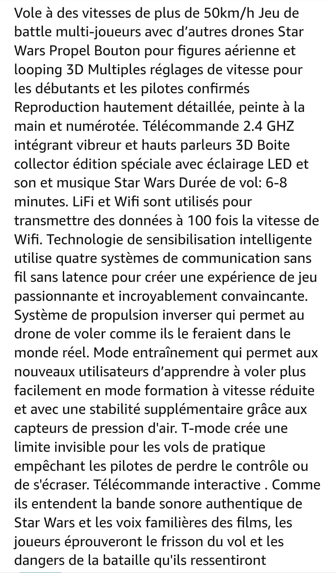 La télécommande est un contrôleur interactif qui vous emmène au coeur des batailles comme si vous y étiez. Durant le vol, vous entendez la bande sonore originale de Star Wars et les voix familières des héros de la saga (fonction désactivable).
