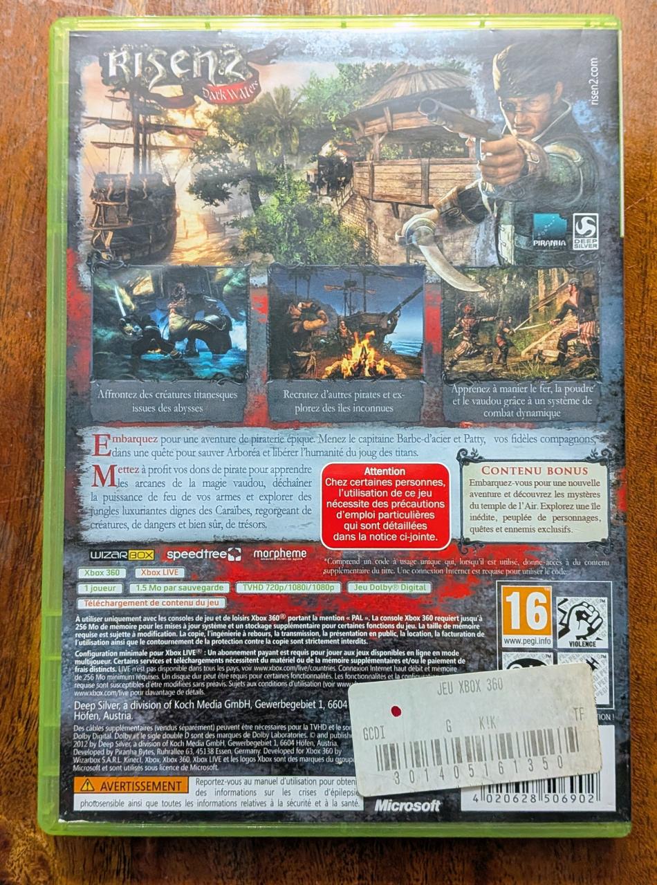 L1 - Risen 2 - Dark Waters Xbox 360 - EAN : 4020628506902 - ARTICLE OCCASION EN TRES BON ETAT GÉNÉRAL - BOITIER ORIGINAL XBOX 360 - JEUX JOUABLE EN FRANCAIS - TEST SUR CONSOLE ( Core , Elite , Arcade , 360 S , Xbox 360 E ) - LIVRAISON ULTRA RAPIDE EN COLIS SUIVI PROTÈGE - COVER FR - COMPLET CIB