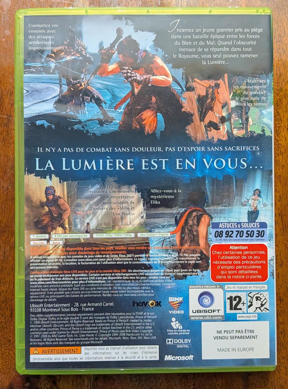 L3 - Prince Of Persia Xbox 360 - EAN : 3307211609372 - ARTICLE OCCASION EN TRES BON ETAT GÉNÉRAL - BOITIER ORIGINAL XBOX 360 - JEUX JOUABLE EN FRANCAIS - TEST SUR CONSOLE ( Core , Elite , Arcade , 360 S , Xbox 360 E ) - LIVRAISON ULTRA RAPIDE EN COLIS SUIVI PROTÈGE - COVER FR - COMPLET CIB - Rétrocompatibilité Xbox Series X pour profiter de Auto HDR et du Boost FPS