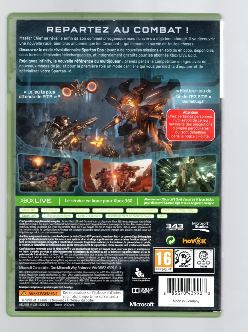 L1 - Halo 4 Xbox 360 - EAN : 885370439908 - ARTICLE OCCASION EN TRES BON ETAT GÉNÉRAL - BOITIER ORIGINAL XBOX 360 - JEUX JOUABLE EN FRANCAIS - LIVRAISON ULTRA RAPIDE EN COLIS SUIVI PROTÈGE - COVER FR - COMPLET