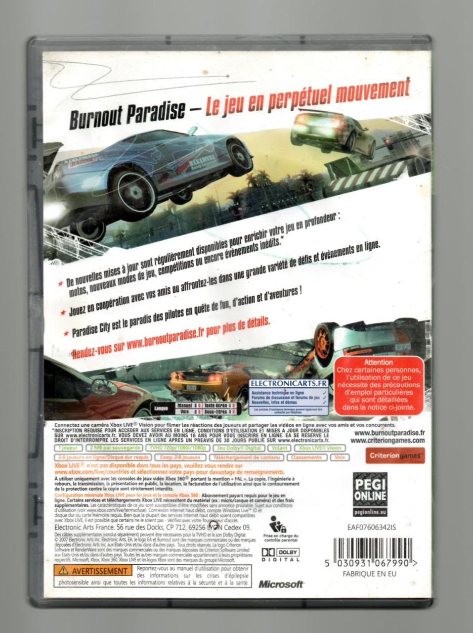 L1 - Burnout : Paradise Xbox 360 - EAN : 5030931067990 - ARTICLE OCCASION EN TRES BON ETAT GÉNÉRAL - BOITIER ORIGINAL XBOX 360 - JEUX JOUABLE EN FRANCAIS - LIVRAISON ULTRA RAPIDE EN COLIS SUIVI PROTÈGE - COVER FR - COMPLET