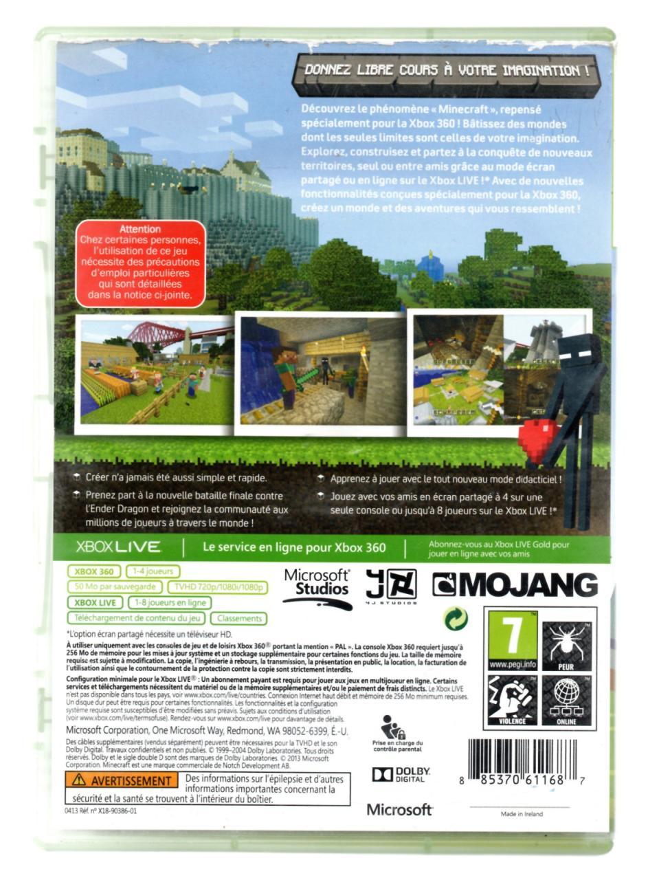 L1 - Minecraft Xbox 360 Edition - EAN : 885370611687 - ARTICLE OCCASION EN TRES BON ETAT GÉNÉRAL - BOITIER ORIGINAL XBOX 360 - JEUX JOUABLE EN FRANCAIS - LIVRAISON ULTRA RAPIDE EN COLIS SUIVI PROTÈGE - COVER FR - COMPLET