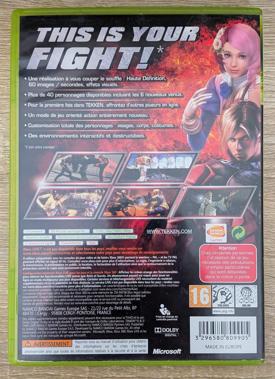 L1 - Tekken 6 Xbox 360 - EAN : 3296580809905 - ARTICLE OCCASION EN TRES BON ETAT GÉNÉRAL - BOITIER ORIGINAL XBOX 360 - JEUX JOUABLE EN FRANCAIS - LIVRAISON ULTRA RAPIDE EN COLIS SUIVI PROTÈGE - COVER FR