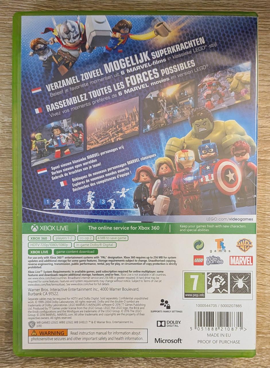 L2 - Lego Marvel Avengers Xbox 360 - EAN : 5051888210871 - ARTICLE OCCASION EN TRES BON ETAT GÉNÉRAL - TEST SUR CONSOLE ( Core , Elite , Arcade , 360 S , Xbox 360 E , Xbox SX ) BOITIER ORIGINAL XBOX 360 - JEUX JOUABLE EN FRANCAIS - LIVRAISON ULTRA RAPIDE EN COLIS SUIVI PROTÈGE - COVER FR