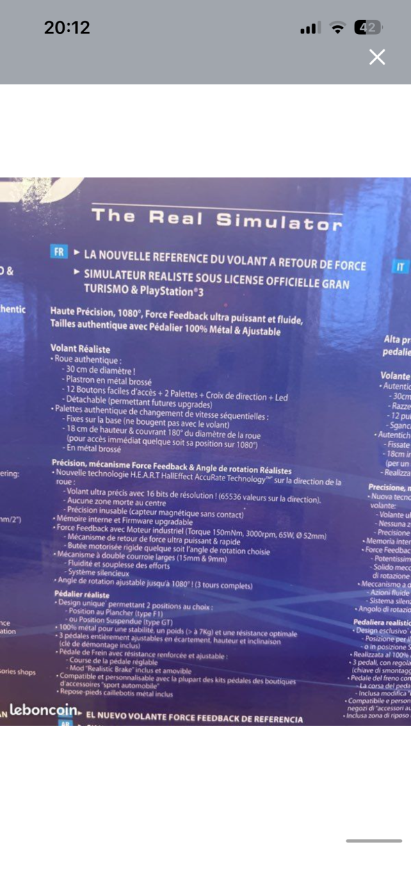 Volant à retour de force / simulateur réaliste sous licence officielle Gran Turismo & Play Station.