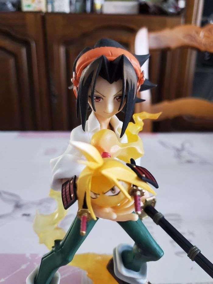 figurine shaman king yoh asakura ses t'une officielle marque bandai spirits 19cm de hauteur comme neuf