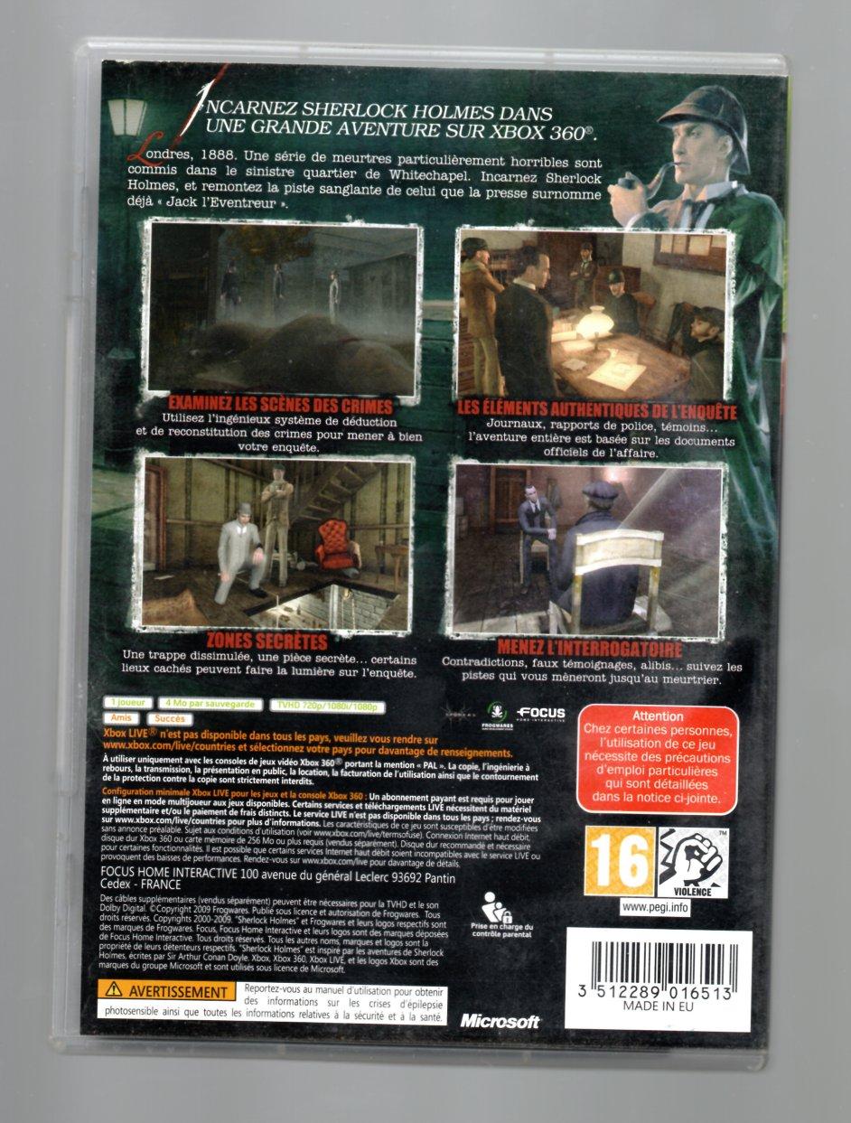 L1 - Sherlock Holmes Contre Jack L'éventreur Xbox 360 - EAN : 3512289016513 - ARTICLE OCCASION EN TRES BON ETAT GÉNÉRAL - BOITIER CRYSTAL CASE - JEUX JOUABLE EN FRANCAIS - TEST SUR CONSOLE ( Core , Elite , Arcade , 360 S , Xbox 360 E ) - LIVRAISON ULTRA RAPIDE EN COLIS SUIVI PROTÈGE - COVER FR - COMPLET CIB