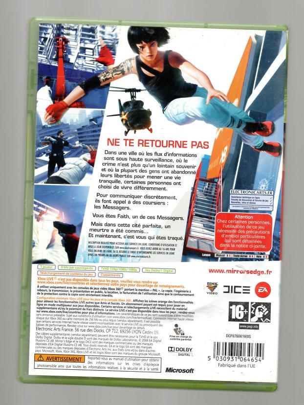 L2 - Mirror's Edge Xbox 360 - EAN : 5030931064654 - ARTICLE OCCASION EN TRES BON ETAT GÉNÉRAL - TEST SUR CONSOLE ( Core , Elite , Arcade , 360 S , Xbox 360 E , Xbox SX ) BOITIER ORIGINAL XBOX 360 - JEUX JOUABLE EN FRANCAIS - LIVRAISON ULTRA RAPIDE EN COLIS SUIVI PROTÈGE - COVER FR - COMPLET CIB