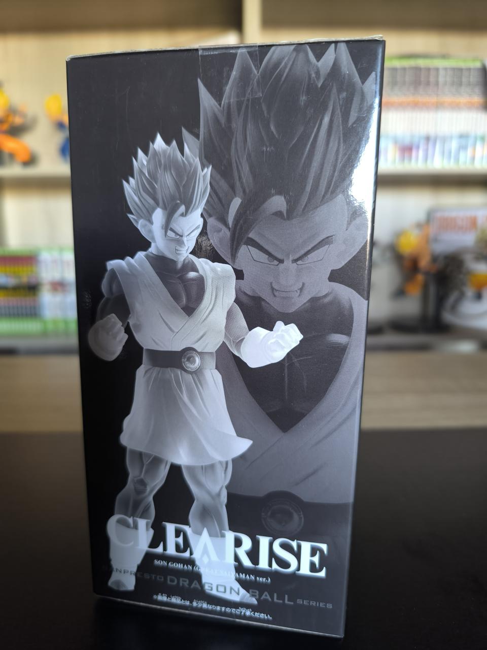 Une figurine élégante et dynamique, avec un effet translucide signature de la gamme Clearise, mettant en valeur Gohan dans sa tenue de Great Saiyaman, avec une sculpture soignée et un rendu visuel unique ✨