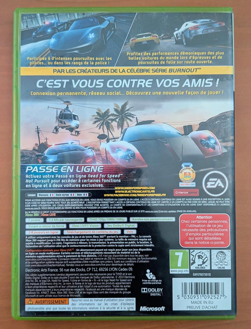 L3 - Need For Speed - Hot Pursuit Xbox 360 - EAN : 5030931092527 - ARTICLE OCCASION EN TRES BON ETAT GÉNÉRAL - TEST SUR CONSOLE ( Core , Elite , Arcade , 360 S , Xbox 360 E ) OK - BOITIER ORIGINAL XBOX 360 - JEUX JOUABLE EN FRANCAIS - LIVRAISON ULTRA RAPIDE EN COLIS SUIVI PROTÈGE - COVER E.U/FR - COMPLET CIB
