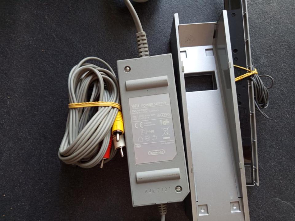 Console Nintendo Wii vendue avec ses câbles secteur, péritel, socle et sensor barre en état correct.