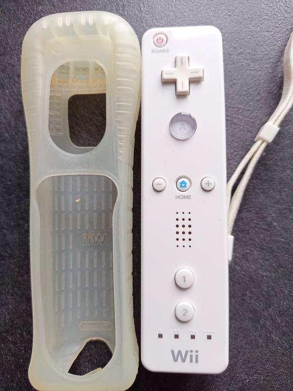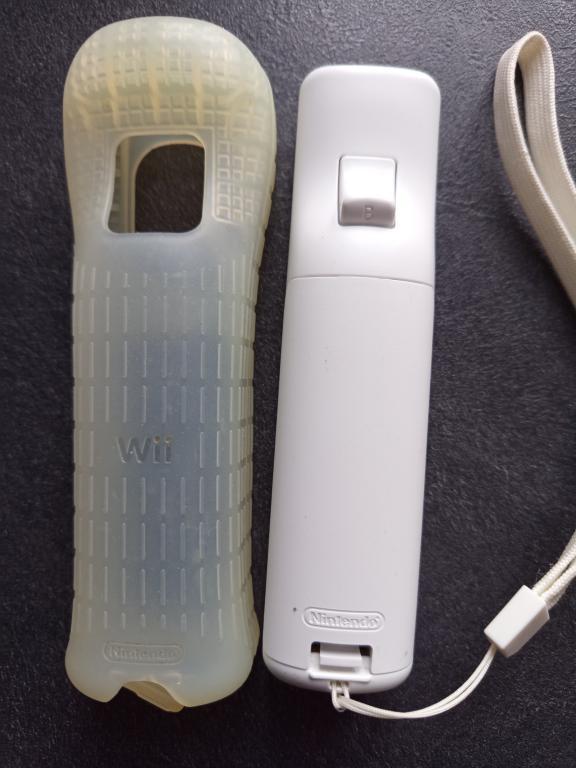 Wiimote vendue avec sa housse en silicone ("jaunie" - officielle ) et sa dragonne (non officielle).