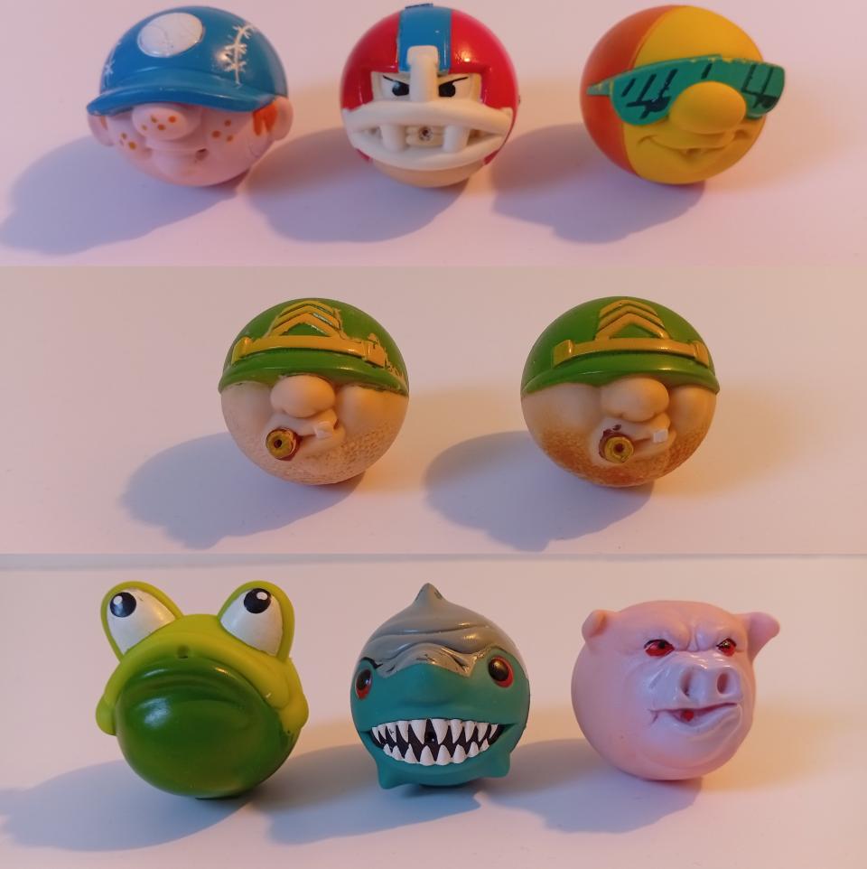 Lot de 8 Personnages Aquaball (Fumbler, Hog Head, Lock Jaw, Sgt. Spitz (x2), Shades, Slider et Spit-It) - Spit Balls - LEGALIA S.A. - 1993