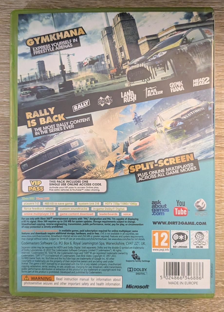 L2 - Dirt 3 Xbox 360 - EAN : 5024866346886 - ARTICLE OCCASION EN TRES BON ETAT GÉNÉRAL - TEST SUR CONSOLE ( Core , Elite , Arcade , 360 S , Xbox 360 E , Xbox SX ) BOITIER ORIGINAL XBOX 360 - JEUX JOUABLE EN FRANCAIS - LIVRAISON ULTRA RAPIDE EN COLIS SUIVI PROTÈGE - COVER E.U - COMPLET CIB