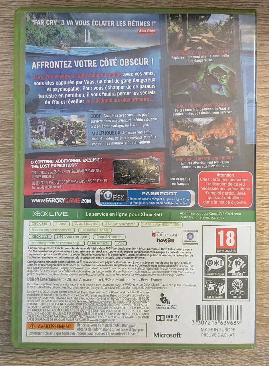 L2 - Far Cry 3 - The Lost Expeditions - Edition Spéciale Xbox 360 - EAN : 3307215639689 - ARTICLE OCCASION EN TRES BON ETAT GÉNÉRAL - TEST SUR CONSOLE ( Core , Elite , Arcade , 360 S , Xbox 360 E , Xbox SX ) BOITIER ORIGINAL XBOX 360 - JEUX JOUABLE EN FRANCAIS - LIVRAISON ULTRA RAPIDE EN COLIS SUIVI PROTÈGE - COVER FR - COMPLET CIB