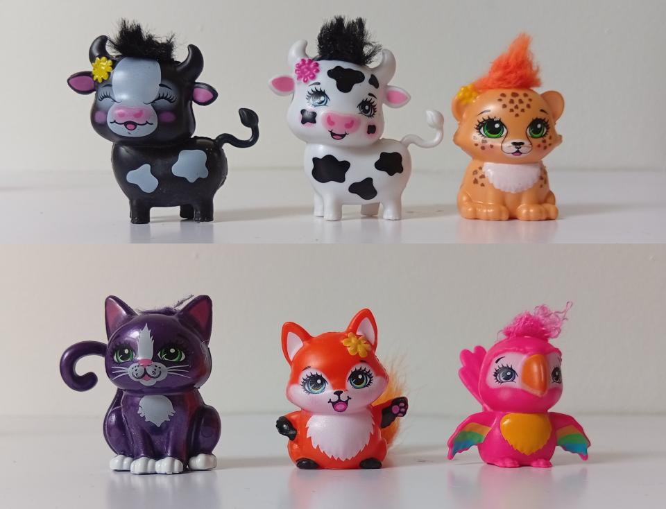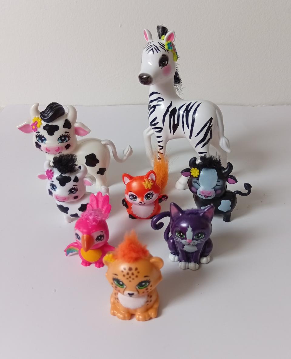 Lot de 8 figurines animal Enchantimals - 2 Grandes figurines (la vache et Hoofette le zebre) et 6 petites (2 vaches, 1 chat, 1 renard, 1 guépard et 1 perroquet) - Mattel