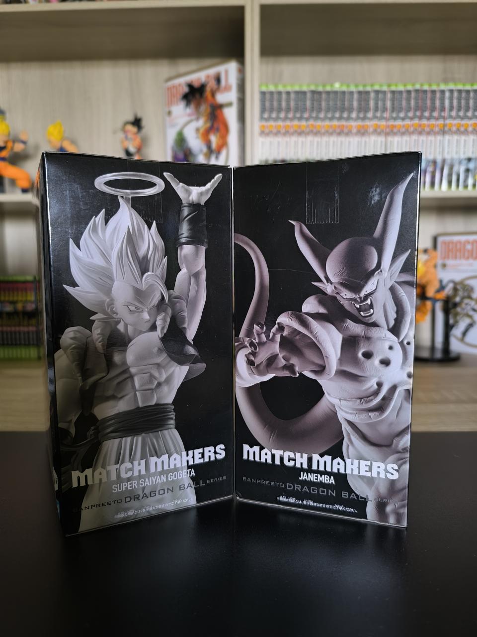 Je vends ce superbe lot de deux figurines issues de la gamme MATCH MAKERS, représentant Super Saiyan Gogeta face à Janemba, dans une scène emblématique du film Dragon Ball Z : Fusion Reborn.