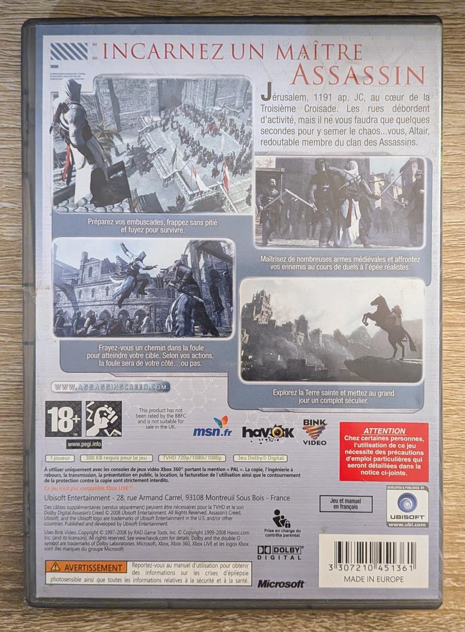 L2 - Assassin's Creed Edition Classics Xbox 360 - EAN : 3307210451361 - ARTICLE OCCASION EN TRES BON ETAT GÉNÉRAL - TEST SUR CONSOLE ( Core , Elite , Arcade , 360 S , Xbox 360 E , Xbox SX ) BOITIER ORIGINAL XBOX 360 - JEUX JOUABLE EN FRANCAIS - LIVRAISON ULTRA RAPIDE EN COLIS SUIVI PROTÈGE - COVER FR - COMPLET CIB