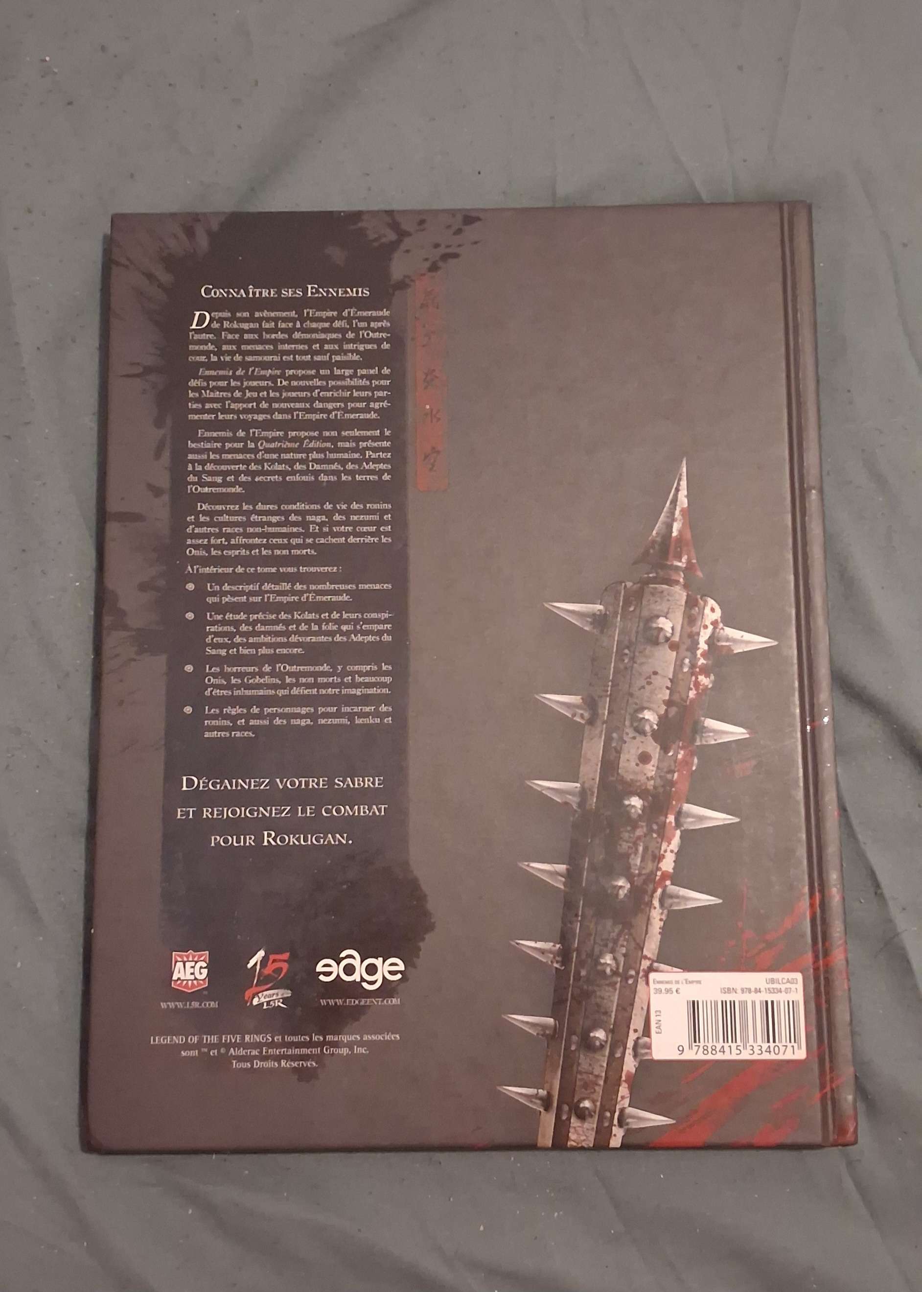 Vend bouquin de jeu de role L5A, le livre des 5 anneaux V4, le supplément "Ennemis de l empire"