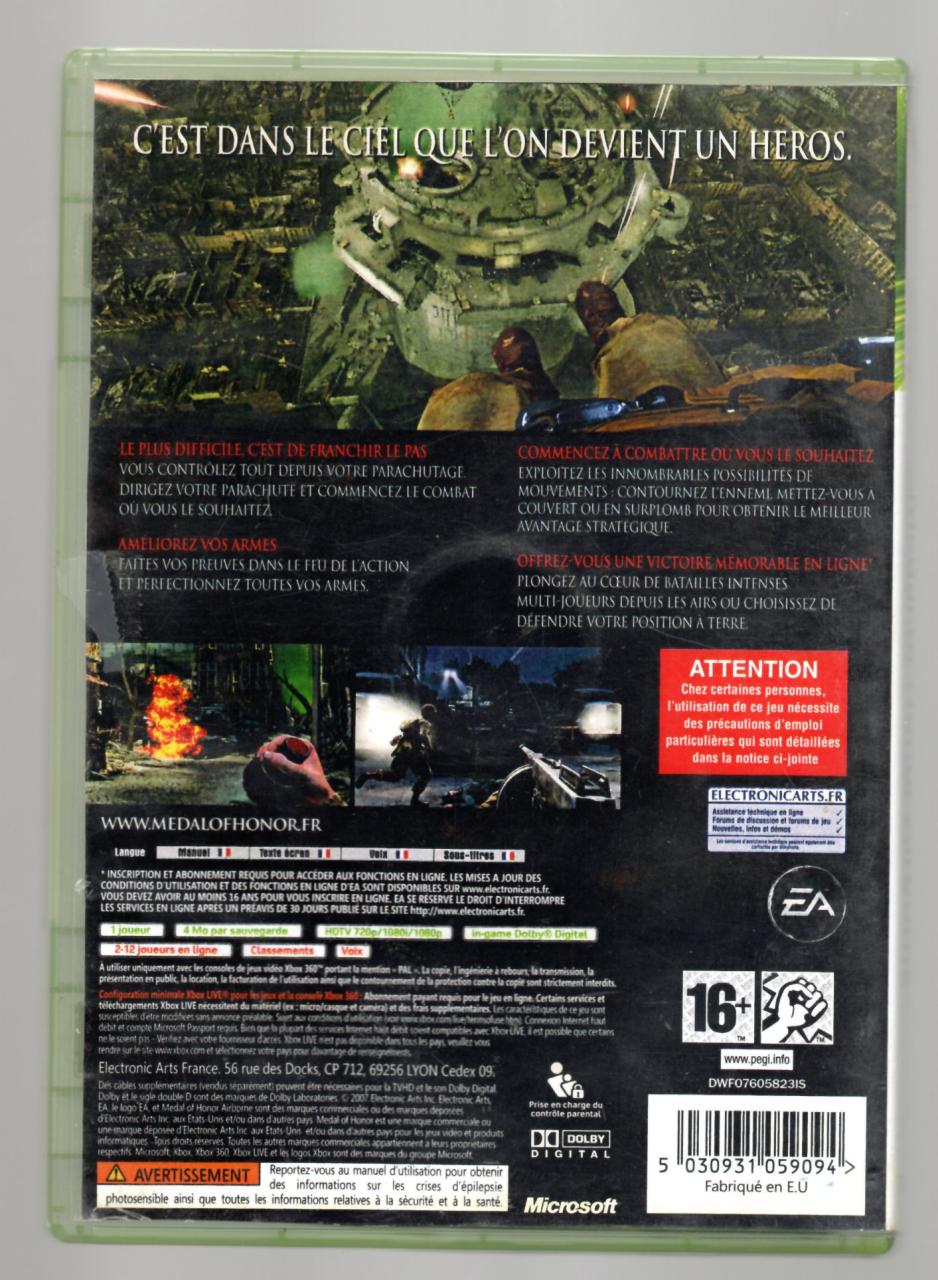 L2 - Medal Of Honor Airborne Xbox 360 - EAN : 5030931059094 - ARTICLE OCCASION EN TRES BON ETAT GÉNÉRAL - TEST SUR CONSOLE ( Core , Elite , Arcade , 360 S , Xbox 360 E , Xbox SX ) BOITIER ORIGINAL XBOX 360 - JEUX JOUABLE EN FRANCAIS - LIVRAISON ULTRA RAPIDE EN COLIS SUIVI PROTÈGE - COVER FR - COMPLET CIB