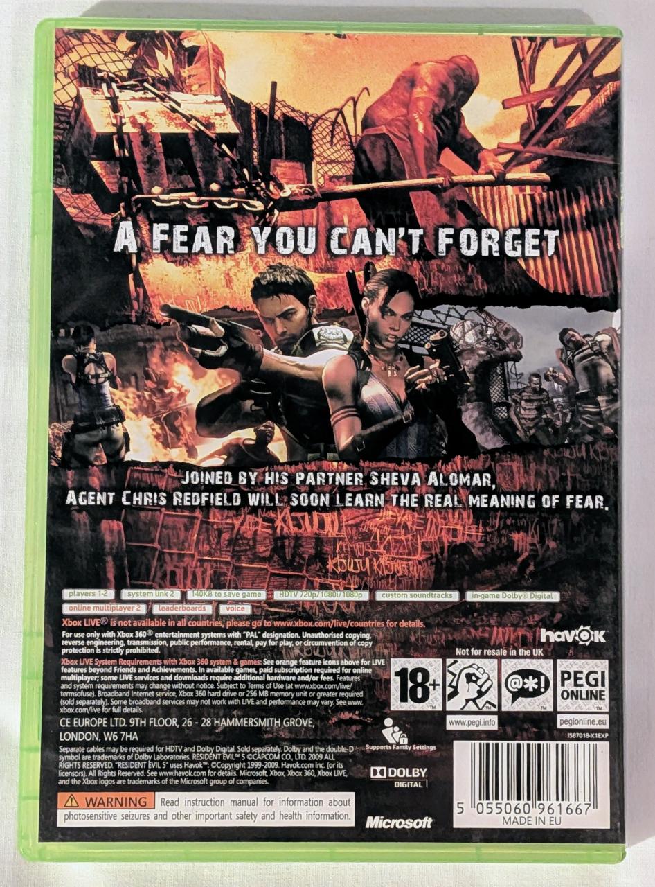 L3 - Resident Evil 5 Xbox 360 - EAN : 5055060961667 - ARTICLE OCCASION EN TRES BON ETAT GÉNÉRAL - TEST SUR CONSOLE ( Core , Elite , Arcade , 360 S , Xbox 360 E , SX ) OK - BOITIER ORIGINAL XBOX 360 - JEUX JOUABLE EN FRANCAIS - LIVRAISON ULTRA RAPIDE EN COLIS SUIVI PROTÈGE - COVER E.U - COMPLET CIB