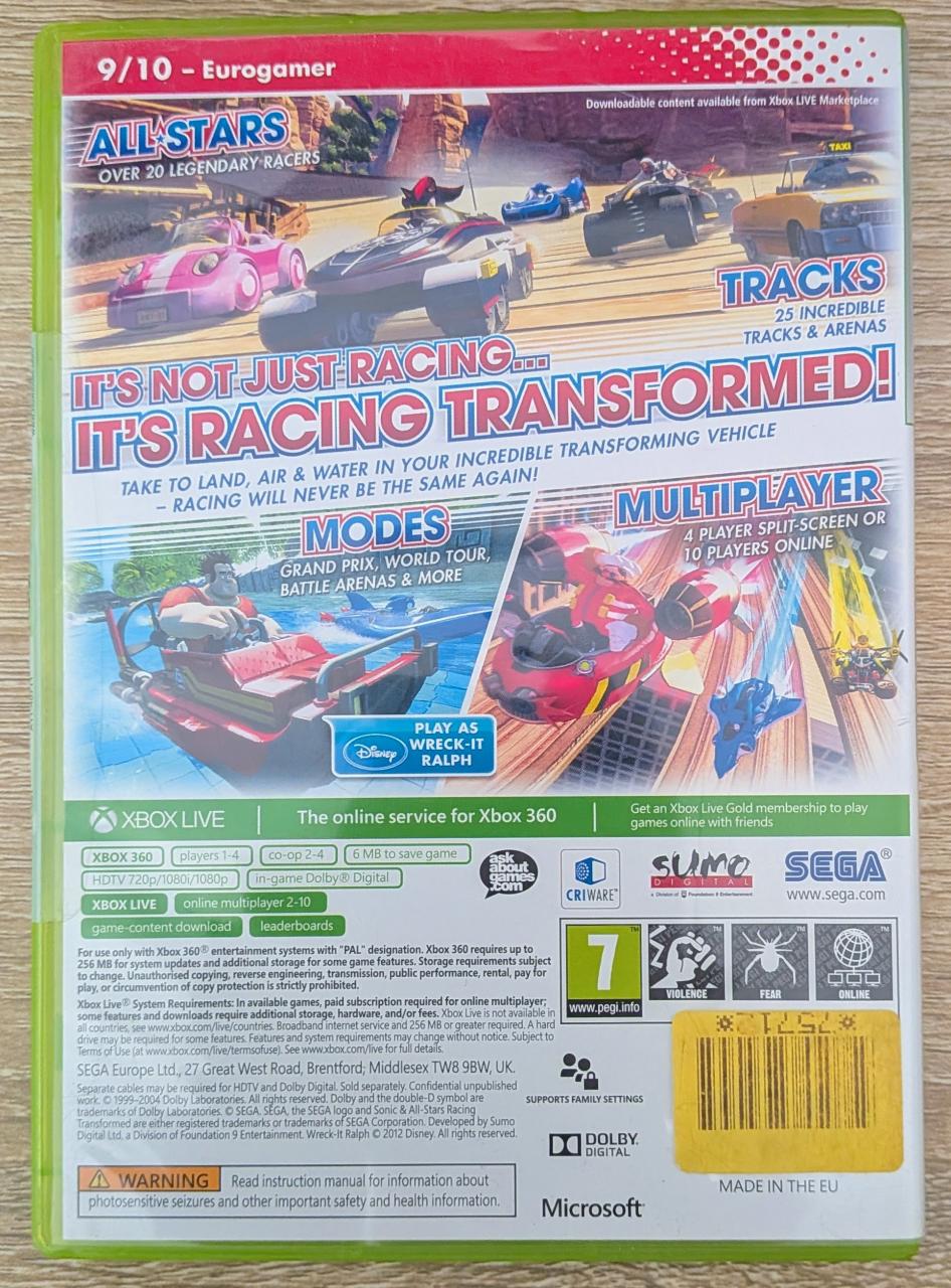 L2 - Sonic & Sega All-Star Racing - Transformed Xbox 360 - EAN : 5055277023165 - ARTICLE OCCASION EN TRES BON ETAT GÉNÉRAL - TEST SUR CONSOLE ( Core , Elite , Arcade , 360 S , Xbox 360 E , Xbox SX ) BOITIER ORIGINAL XBOX 360 - JEUX JOUABLE EN FRANCAIS - LIVRAISON ULTRA RAPIDE EN COLIS SUIVI PROTÈGE - COVER E.U/FR - COMPLET CIB
